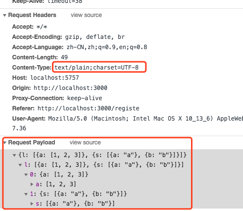 场景6text/plain;charset=UTF-8方式,json字符串方式(包括多维数据)。【可行】